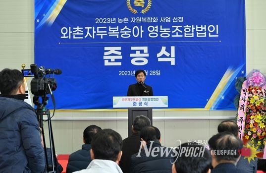 뉴스펀치 김수동 기자 | 와촌자두복숭아영농조합법인은 28일 경산시 와촌면에서 집하장·공선장 준공식을 했다.