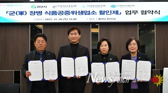 뉴스펀치 김수동 기자 | 경산시는 28일 식품‧공중위생단체인 사)한국외식업중앙회 경북지회 경산시지부(지부장 김여욱), 사)대한숙박업중앙회 경북지회 경산시지부(지부장 김여욱), 사)대한미용사회 경북지회 경산시지부(지부장 최미자)와 '군(軍) 장병 식품·공중위생업소 할인제' 시행을 위한 업무협약(MOU)을 체결했다.