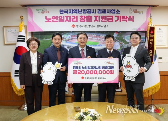 뉴스펀치 박세훈 기자 | 한국지역난방공사는 12일 김해시를 방문해 노인일자리 창출을 위한 지원금 2천만원을 기탁했다.