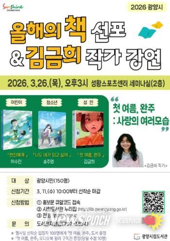 뉴스펀치 최영남 기자 | 광양시는 오는 3월 26일 오후 3시 성황스포츠센터 세미나실(2층)에서 ‘2026 광양시 올해의 책 선포식 및 작가 초청 강연’을 개최한다.