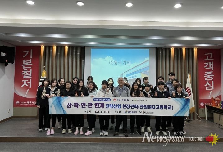 뉴스펀치 박세훈 기자 | 창원특례시는 3월 12일 한일여자고등학교 학생 20명을 대상으로 ㈜동구기업과 한국재료연구원을 방문하는 현장 견학 프로그램을 실시했다고 밝혔다.