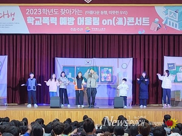 학교폭력 예방, 어울림 On(溫)콘서트를 관람한 000학생은“친구들 사이에서 왕따가 없으면 좋겠으며 만약 그런 친구가 있다면 자신이 직접 도움을 주고 싶다.”라고 소감을 밝혔다.
