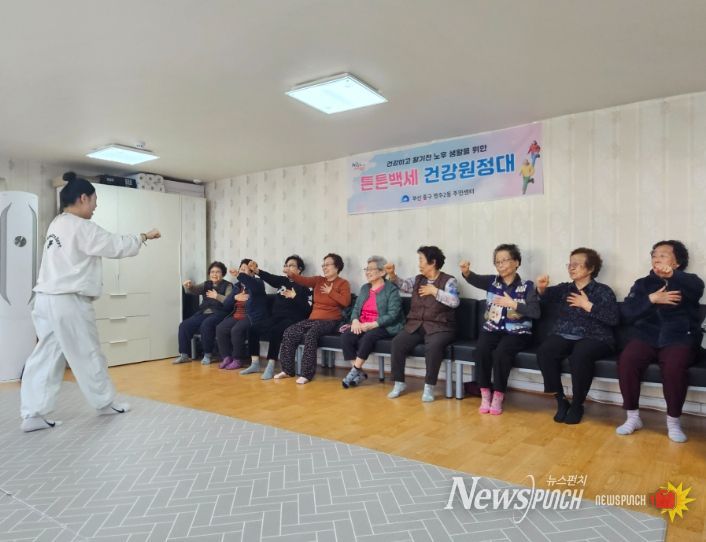 뉴스펀치 김윤걸 기자 | 부산 중구 영주2동 주민센터는 지난 11일 금호타운 원로의 집에서 지역 어르신을 대상으로 찾아가는 건강 프로그램인‘튼튼백세 건강원정대’운영을 시작했다.