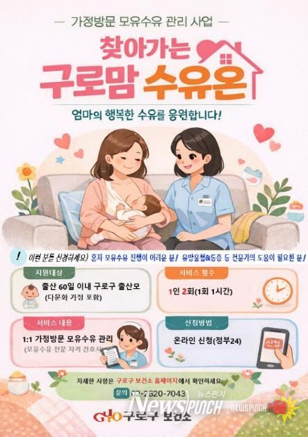뉴스펀치 박상훈 기자 | 구로구가 출산 초기 산모의 모유수유 부담을 덜기 위한 방문형 지원사업을 새롭게 추진한다.