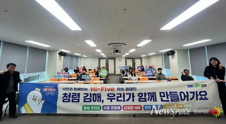 뉴스펀치 박세훈 기자 | 김해시는 12일 오후 2시 제2청사 중회의실에서 20개 문화예술단체와 함께 청렴한 김해 구현을 위한 ‘슬기로운 청렴생활 Hi-Five 약속 캠페인’을 실시했다.