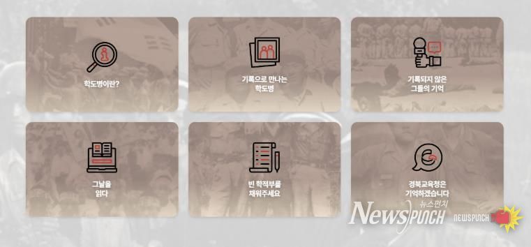 뉴스펀치 박세훈 기자 | 경북교육청은 경북교육사이버박물관에 ‘경북 학도병’ 신규 메뉴를 신설하고 운영을 시작했다고 13일 밝혔다.