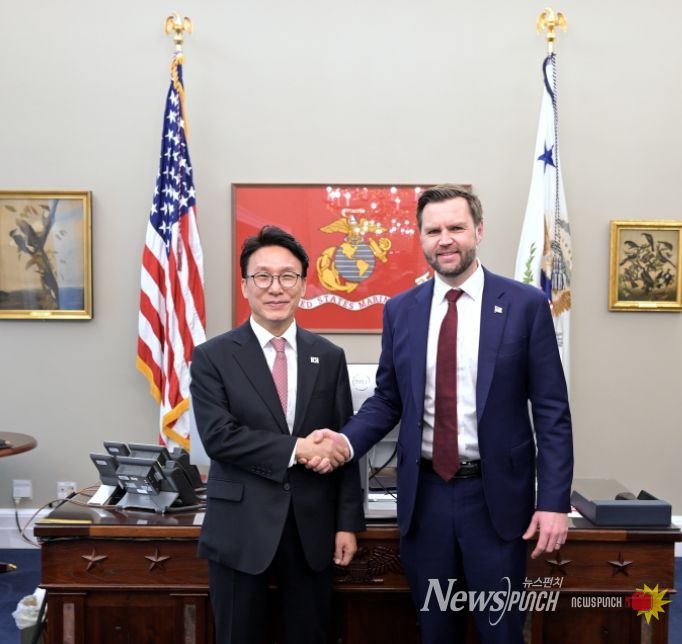 뉴스펀치 김용희 기자 | 김민석 국무총리는 미국 방문 첫째 날인 3월 12일 오후, 워싱턴 D.C. 백악관에서 'J.D. 밴스(James David Vance)'미국 부통령과 회담을 가졌다. 지난 1월 밴스 부통령과의 첫 회담 이후 약 50일 만에 개최된 회담이다.
