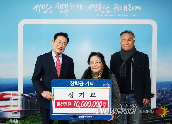 뉴스펀치 김수동 기자 | 지난 28일 대창면 병암리 주민인 정기교 어르신이 1,000만 원의 장학금을 (재)영천시장학회에 기탁했다.