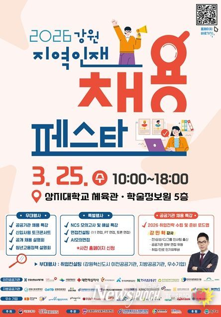 뉴스펀치 조평훈 기자 | 강원지역 청년 구직자를 위한 대규모 채용정보 행사인 '2026 강원 지역인재 채용페스타'가 오는 3월 25일 상지대학교 체육관 및 학술정보원 5층에서 개최된다.