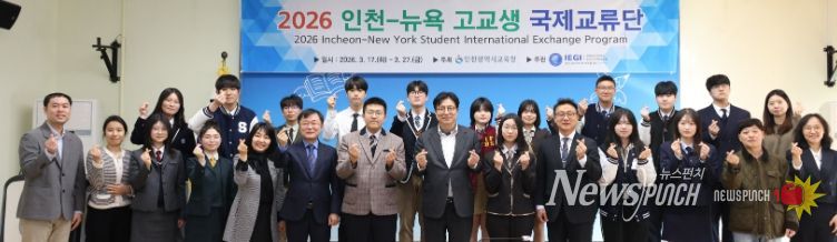 뉴스펀치 정홍균 기자 | 인천광역시교육청동아시아국제교육원은 지난 13일 시교육청 영상회의실에서 ‘2026 인천-뉴욕 고교생 국제교류단 발대식’을 개최했다.