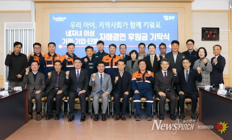 뉴스펀치 김용희 기자 | 광양시는 지난 12일 시청 상황실에서 ‘네 자녀 이상 가정-기업·단체 간 자매결연’ 후원금 기탁식을 개최하고, 지역 내 다자녀 가정을 위한 후원금 9,480만 원을 전달했다고 밝혔다.
