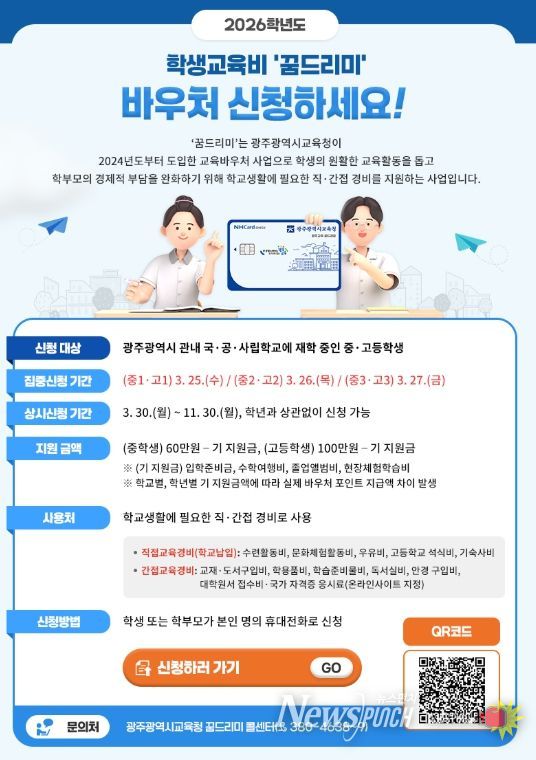 뉴스펀치 최영남 기자 | 광주시교육청은 오는 25일부터 학생교육비를 지원하는 ‘꿈드리미’ 바우처 사업을 시작한다.