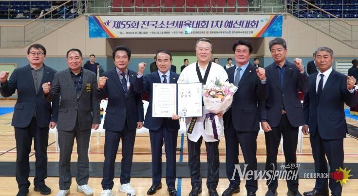 뉴스펀치 김용희 기자 | 광주광역시체육회 전갑수 회장이 태권도 발전에 기여한 공로를 인정받아 국기원으로부터 명예 6단 단증을 수여받았다.