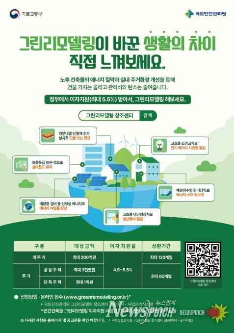 뉴스펀치 정홍균 기자 | 건물 리모델링을 계획하는 국민들이 이자 부담을 덜고 에너지 비용까지 줄일 수 있는 지원이 다시 시작된다.