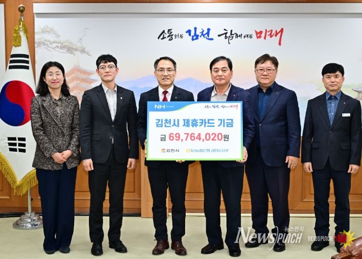 이날 전달된 기금은 6,976만 원으로, 이는 김천시와 NH농협은행 간 제휴 협약에 따라 지난해 법인카드 및 보조금 카드 사용액의 일정 비율(0.2~1%)이 적립된 금액이다.