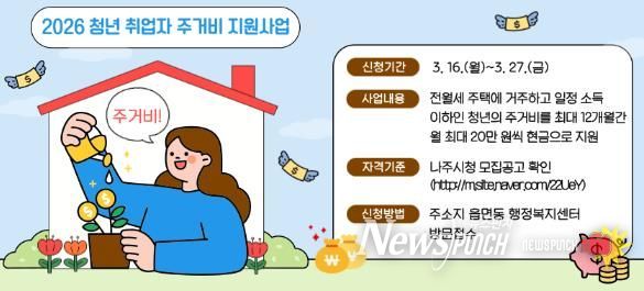 뉴스펀치 김용희 기자 | 전남 나주시가 청년 취업자의 주거비 부담을 덜고 지역 정착을 지원하기 위해 청년 취업자 주거비 지원사업 신청자를 모집한다.