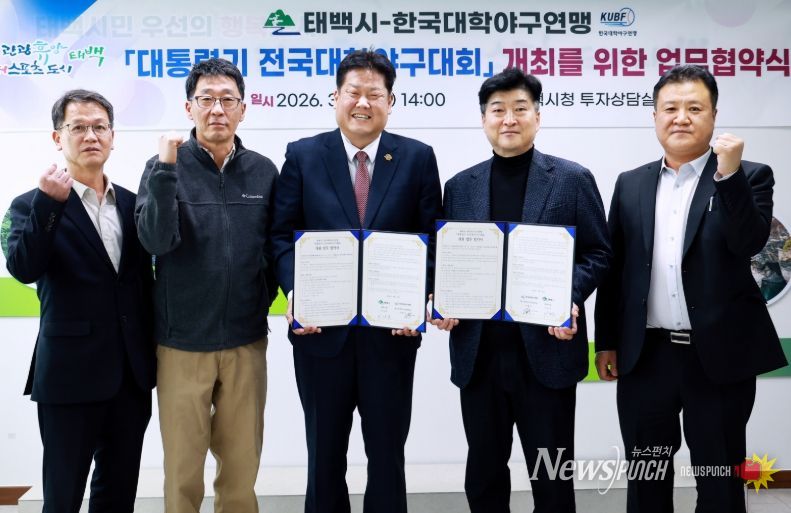 뉴스펀치 조평훈 기자 | 태백시는 지난 16일 시청 투자상담실에서 한국대학야구연맹과 ‘대통령기 전국대학야구대회’ 개최를 위한 업무협약을 체결했다고 밝혔다.