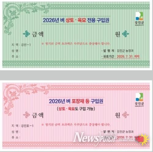 군은 농가별 영농 형태가 다르다는 점에 착안해 ‘상토·육묘 전용 구입권’과 ‘벼 포장재 구입권’ 2종으로 나너 발행했다.