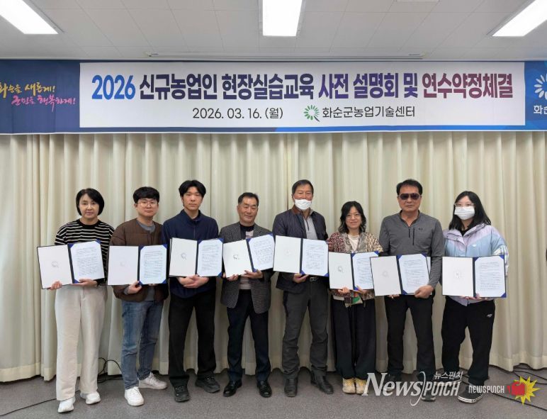 뉴스펀치 김용희 기자 | 화순군은 지난 16일 농업기술센터에서 2026 신규농업인 현장실습교육 사전설명회 및 연수 약정 체결식을 개최했다고 밝혔다.
