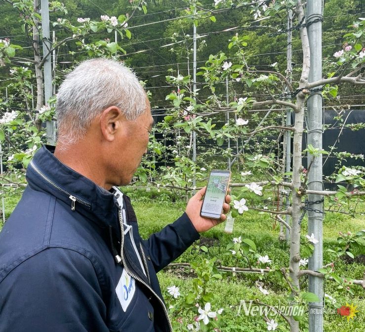 뉴스펀치 김용희 기자 | 장성군이 사과·배 농가에 화상병 예방 약제를 지원하고 있다.