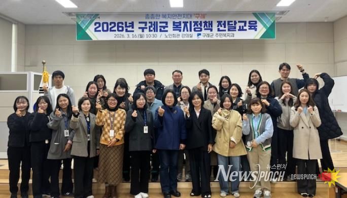 뉴스펀치 김용희 기자 | 전남 구례군은 지난 16일 구례군 노인회관 강의실에서 읍면 복지팀장 및 담당 공무원을 대상으로 ‘2026년 복지정책 전달교육’을 실시했다고 밝혔다.