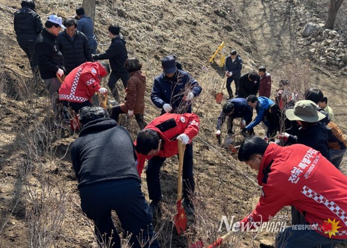 뉴스펀치 정홍균 기자 | 전북특별자치도는 제81회 식목일을 맞아 17일 장수군 번암면 봉화산 산철쭉 군락지 일원에서 나무심기 행사를 열고 산철쭉 5,000그루를 식재했다.