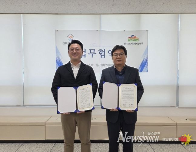 뉴스펀치 조평훈 기자 | 인제군가족센터와 인제군도시재생지원센터는 3월 17일 지역사회 공동발전과 지속가능한 성장 기반 마련을 위한 업무협약(MOU)을 체결했다.
