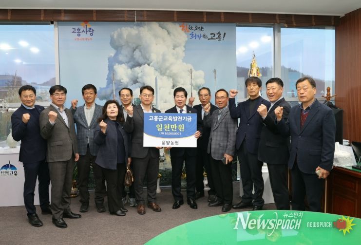 뉴스펀치 김용희 기자 | (사)고흥군교육발전위원회는 18일 풍양농협(조합장 송영철)으로부터 교육발전기금 1천만 원을 전달받았다고 밝혔다.