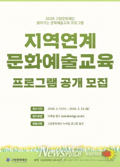 뉴스펀치 박상훈 기자 | 고양문화재단은 지역의 다양한 문화적 자원과 오늘의 삶을 예술로 풀어내는 '지역연계 문화예술교육 프로그램'을 공개 모집한다고 18일 밝혔다.
