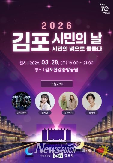 뉴스펀치 박상훈 기자 | 김포시는 오는 3월 28일 김포한강중앙공원에서 ‘2026년 김포시민의 날 기념행사’를 개최한다고 밝혔다. 이번 행사는 김포시 시승격일(4월 1일)을 기념해 시민의 화합과 자긍심을 높이고, 시의 발전을 함께 기념하기 위해 마련됐다.