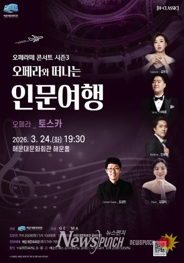 뉴스펀치 김윤걸 기자 | 해운대문화회관은 24일 오후 7시 30분 오페라떼 시즌3 ‘오페라와 떠나는 인문 여행’ 첫 무대로 오페라 ‘토스카’를 해운홀에서 개최한다.