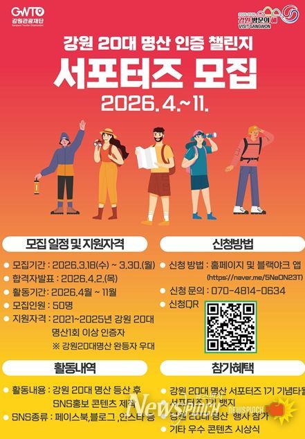뉴스펀치 조평훈 기자 | 강원특별자치도와 강원관광재단은 지난 3월 18일부터 오는 3월 30일까지‘강원 20대 명산 서포터즈 1기를 모집한다고 밝혔다.