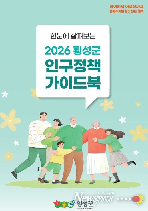 뉴스펀치 조평훈 기자 | 횡성군은 군민들의 생애주기 전반에 걸친 인구정책을 한눈에 살펴보는 ‘2026년 맞춤형 인구정책 가이드북’을 발간했다고 19일 밝혔다.