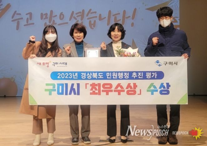뉴스펀치 김수동 기자 | 구미시는 28일 경상북도청 동락관에서 열린 '2023년 경상북도 민원 행정추진실적 평가' 시상식에서 시민을 위한 다양한 민원 시책 등을 발굴하고 추진한 노력으로 ‘최우수상’을 받았다.