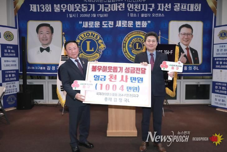 뉴스펀치 정홍균 기자 | 인천시 중구는 최근 ‘국제라이온스협회 354-F(인천)지구’로부터 지역 내 복지 사각지대 해소와 취약계층 지원을 위한 현금 1,004만 원을 기탁받았다고 19일 밝혔다.