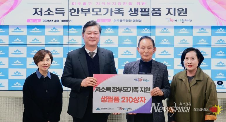 뉴스펀치 정홍균 기자 | 인천 미추홀구는 18일 학산나눔재단 지정후원금을 활용해 관내 저소득층 한부모가족을 위한 ‘생필품 꾸러미 지원 사업’을 추진했다고 밝혔다.