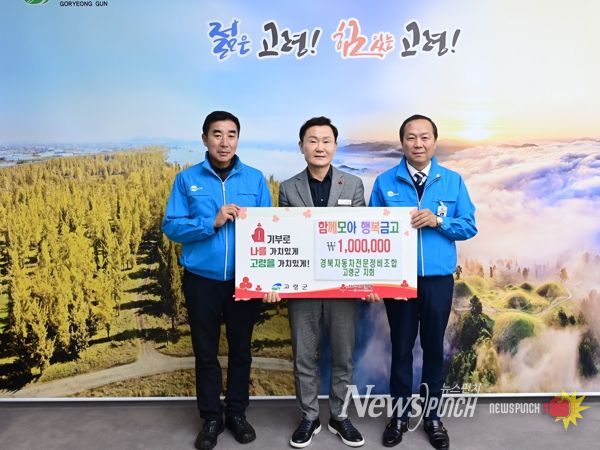 뉴스펀치 김수동 기자 | 경북 자동차전문정비조합 고령군지회에서 12월 28일 고령군청을 방문하여 함께모아 행복금고 성금 100만원을 기탁했다.