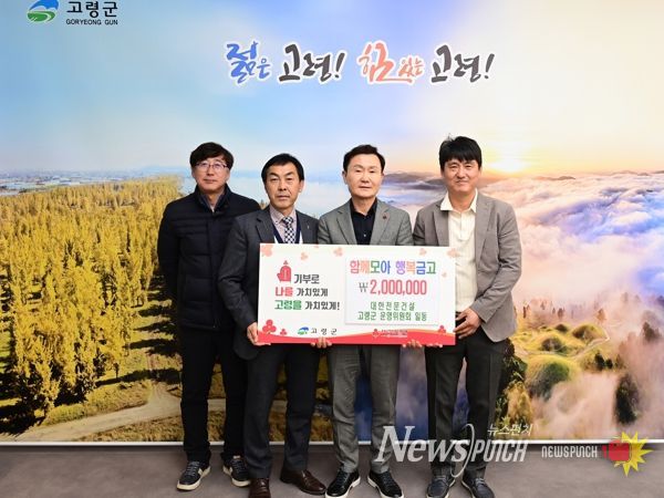 뉴스펀치 김수동 기자 | 대한전문건설협회 경상북도 고령군협의회에서 12월 28일 고령군청을 방문하여 함께모아 행복금고 성금 200만원을 기탁했다.