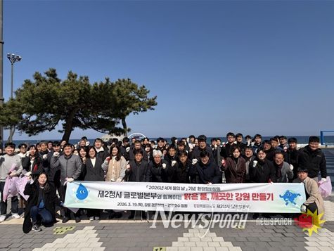 뉴스펀치 조평훈 기자 | 강원특별자치도 제2청사는 '2026년 세계 물의 날'을 맞아 3월 19일 강릉 경포해변~경포호수 일원에서 직원 100여 명이 참여한 가운데 환경정화 활동을 실시했다.