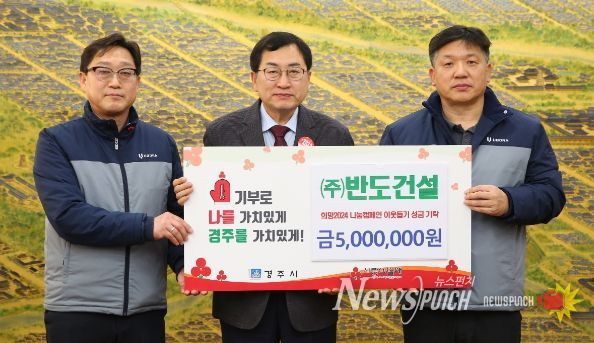 뉴스펀치 김수동 기자 | ㈜반도건설(대표 김용철)에서 지난 28일 경주시청을 방문해 희망2024 나눔캠페인 성금 500만원을 기탁했다.