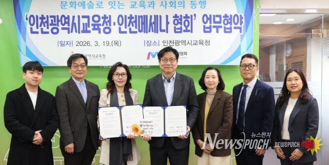 뉴스펀치 정홍균 기자 | 인천광역시교육청은 19일 인천메세나협회와, 학생들의 문화예술 경험 확대와 학교 문화예술교육 활성화를 위한 업무협약을 체결했다.