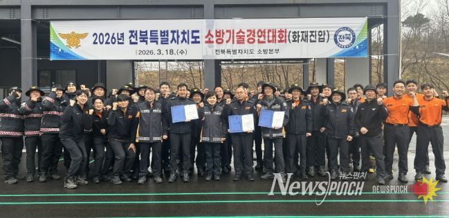 뉴스펀치 최영남 기자 | 전북특별자치도소방본부는 지난 18일 전북소방교육훈련센터(장수군 소재)에서 2026년 도 소방기술경연대회(화재진압전술 분야)를 개최했다고 밝혔다.