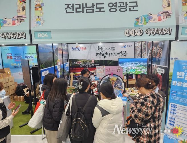 뉴스펀치 김용희 기자 | 영광군은 국내 대표 관광 홍보 행사인 ‘2026 내나라 여행박람회’(3. 19.~3. 22.)에 참가해 영광군의 주요 관광지와 대표 축제는 물론 관광 활성화 정책인 영광 쉼표(반값)여행까지 홍보하며 관람객들의 큰 관심을 끌었다.
