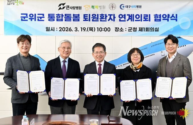 군위군 관계자는 “군위군은 입원의료기관이 없어 외부 의료기관과의 협력이 매우 중요한 지역”이라며 “이번 협약을 통해 병원 치료 이후에도 군민들이 살던 곳에서 안정적으로 생활할 수 있도록 촘촘한 통합돌봄 체계를 구축해 나가겠다”고 밝혔다.