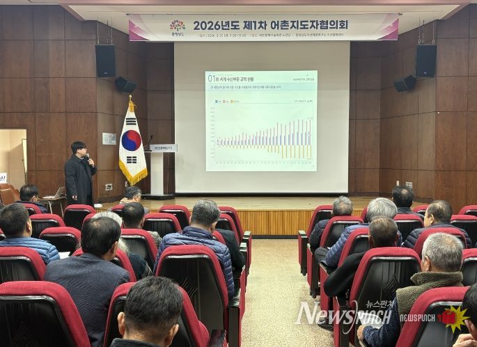뉴스펀치 이현승 기자 | 충남도 수산자원연구소 수산질병센터는 20일 도내 각 지역 어촌계장 및 우수 지도자 130여 명이 참석한 가운데, 2026년 제1차 어촌지도자협의회를 개최했다.