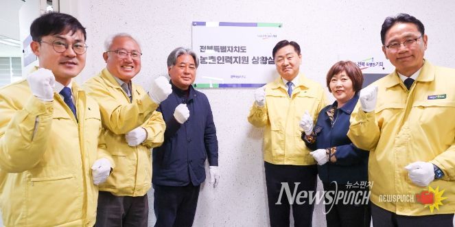 뉴스펀치 정홍균 기자 | 전북특별자치도는 23일 본격적인 농번기를 앞두고 농촌 인력 수급의 체계적 관리와 적기 지원 강화를 위한 ‘농촌인력지원 상황실’ 현판식을 개최했다.