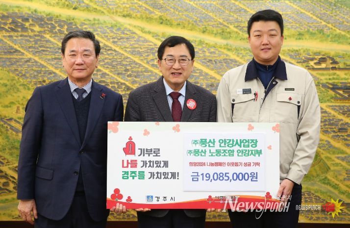 뉴스펀치 김수동 기자 | ㈜풍산 안강사업장에서 지난 28일 경주시청을 방문해 희망2024 나눔캠페인 성금 1908만5000원을 기탁했다.