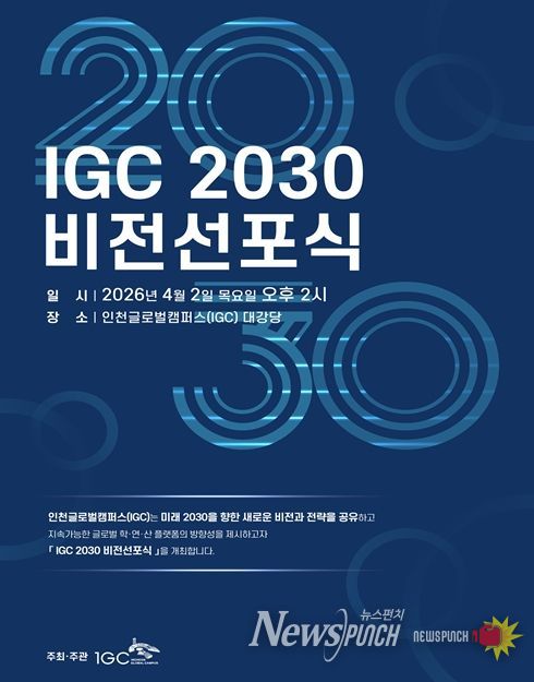 뉴스펀치 정홍균 기자 | 인천글로벌캠퍼스운영재단은 오는 4월 2일, 미래 2030년을 향한 새로운 이정표를 세우는 ‘IGC 2030 비전선포식’을 개최한다고 밝혔다.
