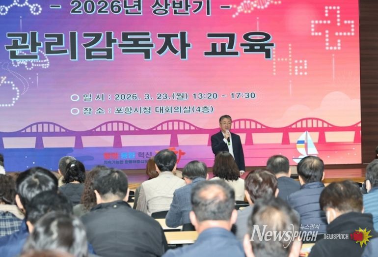 뉴스펀치 박세훈 기자 | 포항시는 이달 23일부터 24일, 30일, 31일까지 총 4회에 걸쳐 시청 대회의실에서 현업근로자를 관리하는 부서의 담당팀장 및 부서장급 등 관리감독자 180여 명을 대상으로 안전보건 법정교육을 실시했다.