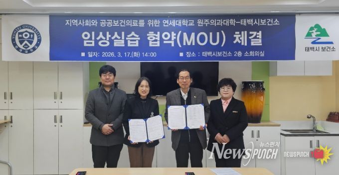 뉴스펀치 조평훈 기자 | 태백시는 지난 3월 17일 보건소 2층 소회의실에서 연세대학교 원주의과대학과 지역사회 발전을 위한 업무협약(MOU)을 체결했다고 밝혔다.